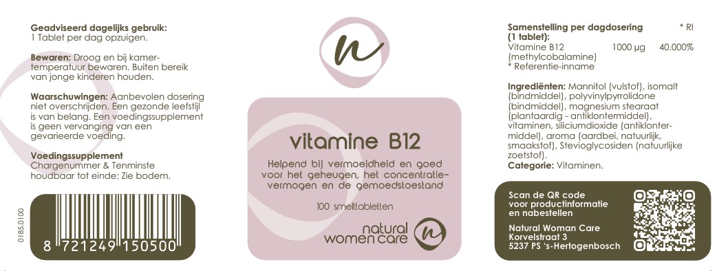 Vitamine B12 in de vorm van methylcobalamine is essentieel voor de productie van myeline, de beschermende laag rond zenuwcellen die snelle signaaloverdracht mogelijk maakt. B12-tekorten kunnen leiden tot geheugenproblemen, concentratieklachten en mentale vermoeidheid. Onze smelttabletten met 1000 mcg methylcobalamine worden direct via het mondslijmvlies opgenomen voor optimale effectiviteit.